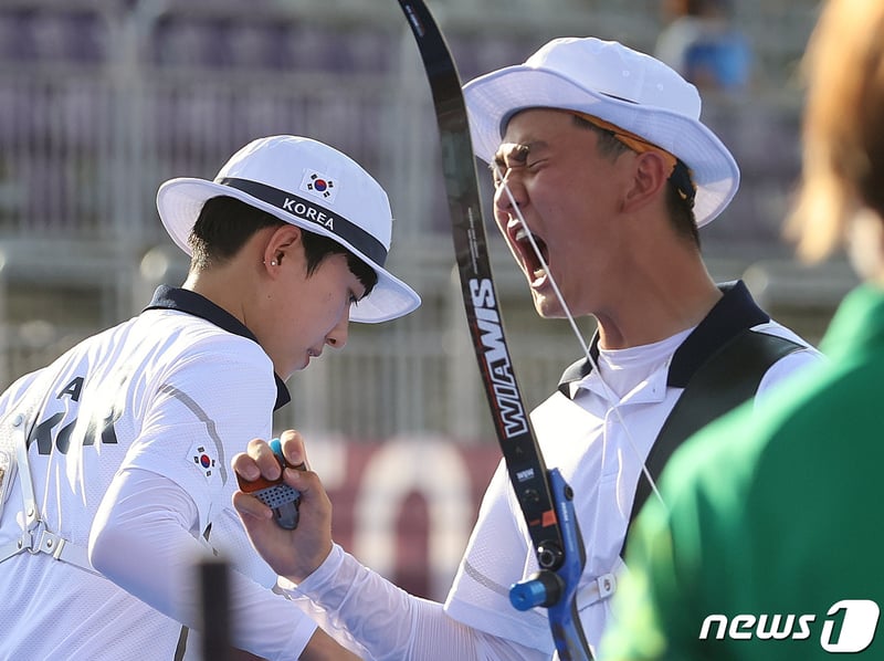 남자양궁 김제덕 선수가 23일 일본 유메노시마 공원 양궁장에서 열린 도쿄올림픽 남자 개인전 랭킹라운드에를 1위로 마친 후 과녁 앞에서 기념촬영을 하고. 1984 로스앤젤레스 올림픽의 최원태와 구자청, 1988 서울 올림픽의 박성수, 1992 바르셀로나의 정재헌. 새회상 만난 기쁨 100회 현산 김제덕 교도 2부 191219. 고교 궁사 김제덕, 랭킹라운드 '깜짝' 1위. National folk museum of korea.